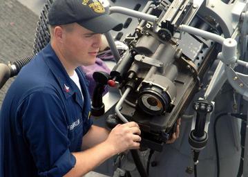| Keywords: US Navy 070206-N-4973A-021 Electronics Technician 2nd Class Franklin performs routine maintenance on an MK-38, 25mm machine gun aboard guided missile destroyer USS O^rsquo,Kane (DDG 77).jpg en Pacific Ocean Feb 6 2007 - Electronics Technician 2nd Class Franklin performs routine maintenance on an MK-38 25mm machine gun aboard guided missile destroyer USS O Kane DDG 77 O'Kane is currently part of the John C Stennis Carrier Strike Group JCSSG and is conducting flight and Integrated Strike Group operations off the coast of Guam after entering the 7th Fleet area of responsibility AOR as part of a deployment to promote peace regional cooperation and stability U S Navy photo by Mass Communication Specialist Seaman Leah C Allen RELEASED 2007-02-06 070206-N-4973A-021 Navy http //www navy mil/view_image asp id 42840 U S Navy photo by Mass Communication Specialist Seaman Leah C Allen PD-USGov-Military-Navy Mk 38 25mm chain gun Aboard USS O'Kane DDG-77 Electronics Technician |