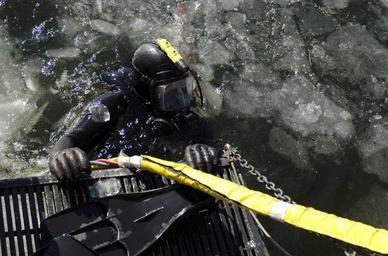 | Keywords: US Navy 070207-N-8467N-002 Navy Diver 3rd Class John Seagraves gets ready to start his dive off the back of the dive boat. Seagraves is part of Naval Submarine Support Facility dive locker.jpg en Groton Conn Feb 7 2007 - Navy Diver 3rd Class John Seagraves gets ready to start his dive off the back of the dive boat Seagraves is part of Naval Submarine Support Facility dive locker and is attached to the Los Angeles-class fast attack submarine USS San Juan SSN 751 Colder then normal temperatures caused ice to form on the Thames River at Submarine Base New London in Groton Conn U S Navy photo by John Narewski RELEASED 2007-02-07 070207-N-8467N-002 Navy http //www navy mil/view_image asp id 43133 U S Navy photo by John Narewski PD-USGov-Military-Navy Naval Submarine Base New London USS San Juan SSN-751 United States Navy Divers Thames River Connecticut |