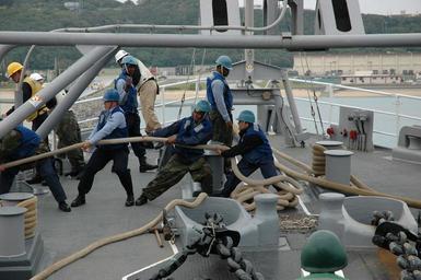 | Keywords: US Navy 070219-N-8487G-178 Sailors on board amphibious transport dock USS Juneau (LPD 10) heave in mooring lines during a special sea and anchor detail as the ship departs from Okinawa, Japan.jpg en Okinawa Japan Feb 19 2007 - Sailors on board amphibious transport dock USS Juneau LPD 10 heave in mooring lines during a special sea and anchor detail as the ship departs from Okinawa Japan U S Navy photo by Mass Communication Specialist Michael Gomez RELEASED 2007-02-19 070219-N-8487G-178 Navy http //www navy mil/view_image asp id 43360 U S Navy photo by Mass Communication Specialist Michael Gomez PD-USGov-Military-Navy Aboard USS Juneau LPD-10 Images from US Navy location Okinawa Japan |