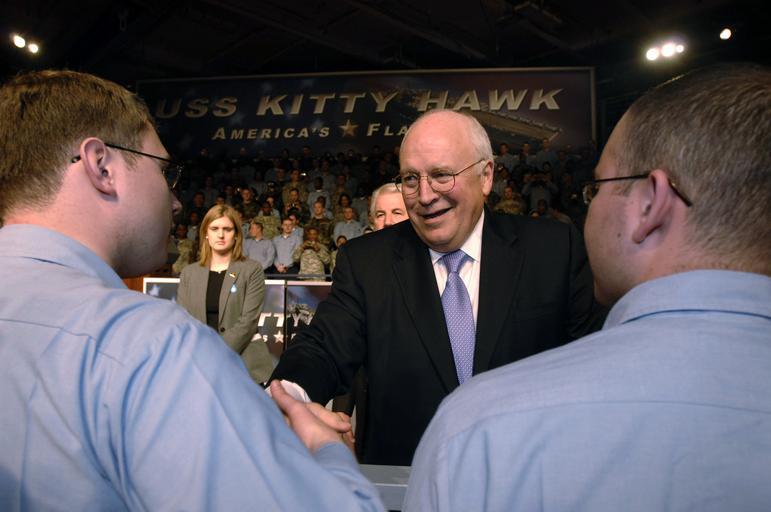 Keywords: US Navy 070221-N-8492C-194 Vice President Dick Cheney speaks to a group of nearly 4,000 Japan-based military personnel, family members and Department of Defense civilian employees during a visit to USS Kitty Hawk (CV 63).jpg en Yokosuka Japan Feb 21 2007 Vice President Dick Cheney speaks to a group of nearly 4 000 Japan-based military personnel family members and Department of Defense civilian employees during a visit to USS Kitty Hawk CV 63 During his speech Cheney thanked the troops for their support of the global war on terrorism Cheney is in Japan during a week-long tour to the Pacific to strengthen alliances with Japan and Australia U S Navy photo by Chief Mass Communication Specialist Todd P Cichonowicz RELEASED 2007-02-21 070221-N-8492C-194 Navy http //www navy mil/view_image asp id 43351 U S Navy photo by Chief Mass Communication Specialist Todd P Cichonowicz PD-USGov-Military-Navy United States Fleet Activities Yokosuka Aboard USS Kitty Hawk CV-63 Dick Cheney in 2007 Handshakes |