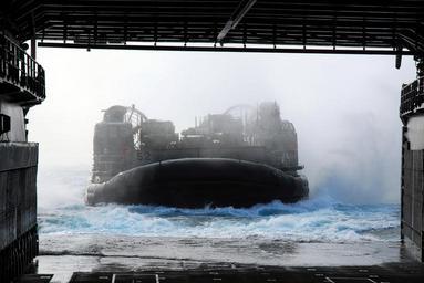 | Keywords: US Navy 070310-N-4124C-009 A landing craft air cushion (LCAC) assigned to Assault Craft Unit (ACU) 5, Detachment Western Pacific, readies itself to enter the well deck of dock landing ship USS Harpers Ferry (LSD 49).jpg en PACIFIC OCEAN March 10 2007 - A landing craft air cushion LCAC assigned to Assault Craft Unit ACU 5 Detachment Western Pacific readies itself to enter the well deck of dock landing ship USS Harpers Ferry LSD 49 The ship left Okinawa Japan en route to the island of Iwo Jima to support the 62nd commemoration of the World War II battle there LCACs will be used to transport Marines and Sailors to island to observe the commemoration and experience firsthand what has become sacred territory as result of the sacrifices made there U S Navy photo by Mass Communication Specialist 2nd Class Adam R Cole RELEASED 2007-03-10 070310-N-4124C-009 Navy http //www navy mil/view_image asp id 43887 U S Navy photo by Mass Communication Specialist 2nd Class Adam R Cole PD-USGov-Military-Navy Assault Craft Unit 5 LCAC-52 ship 1992 Aboard USS Harpers Ferry LSD-49 |