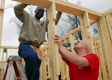 MAKE A MEME View Large Image Mate Calvin Watson and Electronics Technician 1st Class James McCartney build wall frames in a new house as volunteers for Habitat for Humanity.jpg en ATLANTA Ga March 15 2007 - Master Chief Machinist s Mate Calvin Watson and Electronics ...