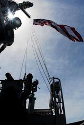 | Keywords: US Navy 070323-N-9928E-021 Sailors from navigation department hoist the American flag aloft from the signal bridge aboard Nimitz-class aircraft carrier USS John C. Stennis (CVN 74).jpg en ARABIAN SEA March 23 2007 - Sailors from navigation department hoist the American flag aloft from the signal bridge aboard Nimitz-class aircraft carrier USS John C Stennis CVN 74 Stennis Carrier Strike Group is on deployment in support of Maritime Security Operations MSO U S Navy photo by Mass Communication Specialist Seaman Josue Lepoldo Escobosa RELEASED 2007-03-23 070323-N-9928E-021 Navy http //www navy mil/view_image asp id 44374 U S Navy photo by Mass Communication Specialist Seaman Josue Lepoldo Escobosa PD-USGov-Military-Navy Aboard USS John C Stennis CVN-74 Flag hoisting |