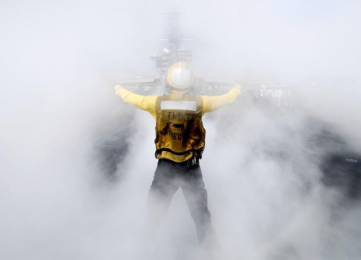 | Keywords: US Navy 070328-N-3729H-108 The flight deck director from the air department's aircraft handling division directs an EA-6B Prowler aircraft assigned to Tactical Electronic Warfare Squadron (VAQ) 138 onto a steam-powered catapult.jpg en PERSIAN GULF March 28 2007 - A U S Navy flight deck director from the air department's aircraft handling division directs an EA-6B Prowler aircraft assigned to the Yellowjackets of Tactical Electronic Warfare Squadron VAQ 138 onto a steam-powered catapult aboard the Nimitz-class aircraft carrier USS John C Stennis CVN 74 Stennis Carrier Strike Group and Carrier Air Wing CVW 9 are conducting a dual-carrier exercise with Eisenhower Carrier Strike Group and Carrier Air Wing CVW 7 in the Persian Gulf U S Navy photo by Mass Communication Specialist 3rd Class Jon Hyde RELEASED 2007-03-28 070328-N-3729H-108 Navy http //www navy mil/view_image asp id 44762 U S Navy photo by Mass Communication Specialist 3rd Class Jon Hyde PD-USGov-Military-Navy Grumman EA-6 Prowler aircraft carrier launches Aboard USS John C Stennis CVN-74 Standing men |