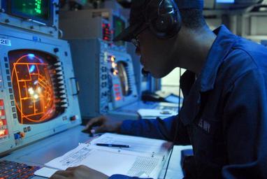 | Keywords: US Navy 070329-N-4124C-011 Operations Specialist Seaman Recruit Louisdes J. Ambroise, attached to Amphibious Squadron (PHIBRON) 11, monitors tracks on a radar screen in the PHIBRON flag plot aboard the amphibious assault ship U.jpg en Yellow Sea March 29 2007 - Operations Specialist Seaman Recruit Louisdes J Ambroise attached to Amphibious Squadron PHIBRON 11 monitors tracks on a radar screen in the PHIBRON flag plot aboard the amphibious assault ship USS Essex LHD 2 during a combined U S -Republic of Korea amphibious landing on ROK s Manripo Beach as part of Foal Eagle 07 The landing and exercise overall demonstrate U S commitment to the ROK/U S alliance and enhances combat readiness of ROK and U S forces U S Navy photo by Mass Communication Specialist 2nd Class Adam R Cole RELEASED 2007-03-29 070329-N-4124C-011 Navy http //www navy mil/view_image asp id 44526 U S Navy photo by Mass Communication Specialist 2nd Class Adam R Cole PD-USGov-Military-Navy Foal Eagle 2007 Aboard USS Essex LHD-2 Amphibious Squadron 11 |