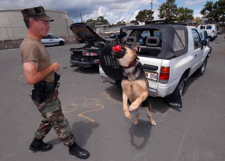 Keywords: US Navy 070329-N-4965F-003 Military working dog, Arpi, a 5-year-old German Sheppard, catches a chew toy in mid-air thrown by Master-at-Arms 1st Class Doug Johnson.jpg en PEARL HARBOR Hawaii March 29 2007 - Military working dog Arpi a 5-year-old German Sheppard catches a chew toy in mid-air thrown by Master-at-Arms 1st Class Doug Johnson a military working dog handler assigned to Naval Station Pearl Harbor NAVSTA PH Security K-9 Division Johnson rewarded Arpi after locating hidden explosives inside of a car during a training exercise on board NAVSTA PH The NAVSTA PH Security K-9 Division is a specialized unit that provides regional security support for patrol explosive and drug detection U S Navy photo by Mass Communication Specialist 1st Class James E Foehl RELEASED 2007-03-29 070329-N-4965F-003 Navy http //www navy mil/view_image asp id 44602 U S Navy photo by Mass Communication Specialist 1st Class James E Foehl PD-USGov-Military-Navy German Shepherd Dog 2007 in Pearl Harbor Images from US Navy location Pearl Harbor Hawaii Males with dogs Military working dogs of the United States Master-at-arms Dogs of Hawaii Dogs standing on rear legs |