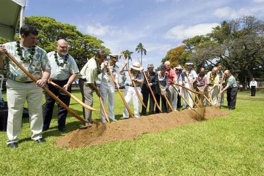 | Keywords: US Navy 070403-N-6674H-072 Commander, Navy Region Hawaii (CNRH) Rear Adm. T. G. Alexander, center, joined on his left by Rep. Neil Abercrombie, and Sen. Daniel K. Akaka, along with representatives of Forest City Military Commun.jpg en PEARL HARBOR Hawaii April 03 2007 - Commander Navy Region Hawaii CNRH Rear Adm T G Alexander center joined on his left by Rep Neil Abercrombie and Sen Daniel K Akaka along with representatives of Forest City Military Communities and CNRH use Hawaiian o-o sticks during a military housing groundbreaking ceremony on Ford Island The groundbreaking represents phase-two of a joint venture between CNRH and Forest City Military Communities Hawaii to construct more than 800 new single-family homes on Ford Island U S Navy photo by Mass Communication Specialist Seaman Paul D Honnick RELEASED 2007-04-03 070403-N-6674H-072 Navy http //www navy mil/view_image asp id 44747 U S Navy photo by Mass Communication Specialist Seaman Paul D Honnick PD-USGov-Military-Navy Neil Abercrombie 2007 in Pearl Harbor Images from US Navy location Pearl Harbor Hawaii Ground-breaking ceremonies in the United States Daniel Akaka |
