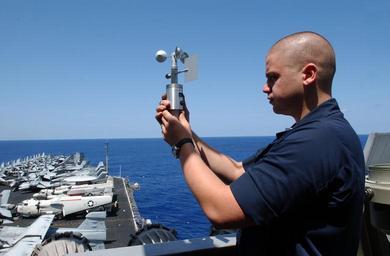 | Keywords: US Navy 070406-N-4009P-149 Aerographer^rsquo,s Mate 3rd Class Heath Collins, from Kirbyville, Texas, uses an anemometer to take a reading of the current local wind speed and direction on board Nimitz-class aircraft carrier USS.jpg en SOUTH CHINA SEA April 6 2007 - Aerographer s Mate 3rd Class Heath Collins from Kirbyville Texas uses an anemometer to take a reading of the current local wind speed and direction on board Nimitz-class aircraft carrier USS Ronald Reagan CVN 76 Ronald Reagan Carrier Strike Group is underway in support of operations in South China Sea U S Navy photo by Mass Communication Specialist Seaman Joe Painter RELEASED 2007-04-06 070406-N-4009P-149 Navy http //www navy mil/view_image asp id 44883 U S Navy photo by Mass Communication Specialist Seaman Joe Painter PD-USGov-Military-Navy Aboard USS Ronald Reagan CVN-76 Aerographer's Mate Anemometers |