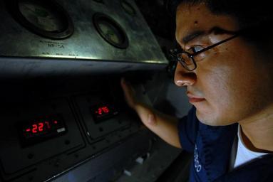 | Keywords: US Navy 070420-N-2659P-026 Machinist's Mate 2nd Class Jorge Izquierdo checks the temperature of liquid oxygen (LOX) in a GB-25 LOX producing machine.jpg en ARABIAN SEA April 20 2007 - Machinist's Mate 2nd Class Jorge Izquierdo checks the temperature of liquid oxygen LOX in a GB-25 LOX producing machine aboard the Nimitz-class aircraft carrier USS John C Stennis CVN 74 LOX is used for pilots to breathe during flights and medical procedures performed aboard Stennis Stennis as part of the John C Stennis Carrier Strike Group is on a regularly scheduled deployment in support of Maritime Security Operations MSOU S Navy photo by Mass Communication Specialist 3rd Class Paul J Perkins RELEASED 2007-04-20 070420-N-2659P-026 Navy http //www navy mil/view_image asp id 45395 U S Navy photo by Mass Communication Specialist 3rd Class Paul J Perkins PD-USGov-Military-Navy Aboard USS John C Stennis CVN-74 |