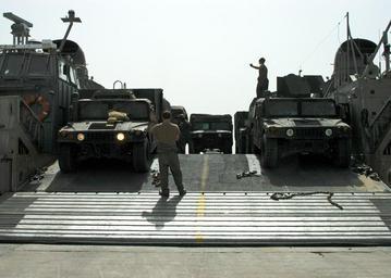 | Keywords: US Navy 070506-N-1467R-027 Sailors assigned to Assault Craft Unit (ACU) 4 direct high mobility multipurpose-wheeled vehicles (HMMWV) on to a landing craft air cushion (LCAC) as part of a Marine backload conducted on board amphi.jpg en PERSIAN GULF May 6 2007 - Sailors assigned to Assault Craft Unit ACU 4 direct high mobility multipurpose-wheeled vehicles HMMWV on to a landing craft air cushion LCAC as part of a Marine backload conducted on board amphibious assault ship USS Bataan LHD 5 Bataan Expeditionary Strike Group ESG is conducting Maritime Security Operations MSO which help set the conditions for security and stability in the maritime environment U S Navy photo by Mass Communication Specialist 3rd Class Pedro A Rodriguez RELEASED 2007-05-06 070506-N-1467R-027 Navy http //www navy mil/view_image asp id 45849 U S Navy photo by Mass Communication Specialist 3rd Class Pedro A Rodriguez PD-USGov-Military-Navy Assault Craft Unit 4 Landing Craft Air Cushion Humvees in United States service |