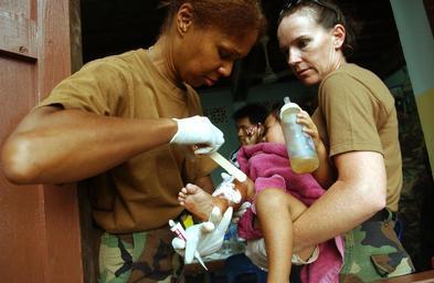 | Keywords: US Navy 070517-F-7806C-002 U.S. Navy Cmdr. Moultrie-Lizana from Detachment F Naval Hospital and Hospital Corpsman 2nd Class Ledbetter from Occupational Hospital Support Unit (OHSU) treats a Thai baby with a burn.jpg en BAHNKAI RAYONG PROVINCE Thailand May 17 2007 - U S Navy Cmdr Moultrie-Lizana from Detachment F Naval Hospital and Hospital Corpsman 2nd Class Ledbetter from Occupational Hospital Support Unit OHSU treats a Thai baby with a burn at the general medicine station in Ban NongPawa School during Cobra Gold 2007 Cobra Gold 2007 is an annual multinational joint training exercise aimed at developing interoperability strengthening relationships between services and developing cross-cultural understanding among participating nations U S Air Force photo by Staff Sgt Elizabeth Concepcion RELEASED 2007-05-17 070517-F-7806C-002 Navy http //www navy mil/view_image asp id 46224 U S Navy photo PD-USGov-Military-Navy Images from US Navy location BAHNKAI RAYONG PROVINCE Thailand |