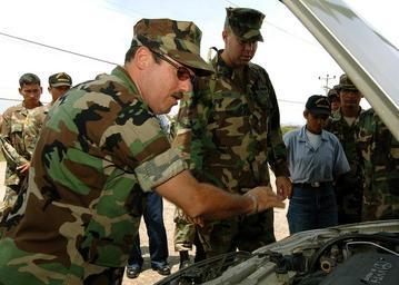 | Keywords: US Navy 070524-N-0989H-007 Honduran sailors, Marine force members and port security personnel receive instructions on proper vehicle inspection.jpg en PUERTO CASTILLA Honduras May 24 2007 - Honduran sailors Marine force members and port security personnel receive instructions on proper vehicle inspection procedures from Master-at-Arms 1st Class Hector Cardona and Master-at-Arms 1st Class Brian Brant U S Navy Expeditionary Training Command Task Group 40 9 is deployed as part of the pilot Global Fleet Station GFS to the Caribbean basin and Central America The mission is designed to validate the GFS concept for the Navy and support U S Southern Command objectives for its area of responsibility by enhancing cooperative partnerships with regional maritime services and improving operational readiness for the participating partner nations U S Navy photo by Mass Communication Specialist 1st Class David Hoffman RELEASED 2007-05-24 070524-N-0989H-007 Navy http //www navy mil/view_image asp id 46582 U S Navy photo by Mass Communication Specialist 1st Class David Hoffman PD-USGov-Military-Navy Images from US Navy location Puerto Castilla Honduras Master-at-arms |