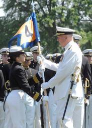 | Keywords: US Navy 070524-N-1026O-003 Midshipman 1st Class Jade Baum presents Naval Academy Superintendent Vice Adm. Rodney P. Rempt with the color company guidon during the Naval Academy Color Parade.jpg en ANNAPOLIS Md May 24 2007 - Midshipman 1st Class Jade Baum presents Naval Academy Superintendent Vice Adm Rodney P Rempt with the color company guidon during the Naval Academy Color Parade The Color Parade honors the companies within the Brigade of Midshipmen who excel overall in academics athletics and professional accomplishments The Color Parade is the oldest parade at the U S Naval Academy a tradition that began in 1867 and is the final formal parade prior to graduation and commissioning U S Navy photo by Shannon O Connor RELEASED 2007-05-24 070524-N-1026O-003 Navy http //www navy mil/view_image asp id 46584 U S Navy photo by Shannon O Connor PD-USGov-Military-Navy Taken with Nikon D2Xs Events at the United States Naval Academy Rodney P Rempt |