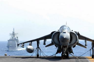 | Keywords: US Navy 070620-N-5033P-125 An A-V-8B Harrier rests on the flight deck of amphibious assault ship USS Kearsarge (LHD 3) as guided missile cruiser USS Vicksburg (CG 69) approaches.jpg en ATLANTIC OCEAN June 20 2007 - An A/V-8B Harrier rests on the flight deck of amphibious assault ship USS Kearsarge LHD 3 as guided missile cruiser USS Vicksburg CG 69 approaches Kearsarge is underway in preparation for an upcoming deployment U S Navy photo by Mass Communication Specialist Seaman Derek Poole RELEASED 2007-06-20 070620-N-5033P-125 Navy http //www navy mil/view_image asp id 47361 U S Navy photo by Mass Communication Specialist Seaman Derek Poole PD-USGov-Military-Navy USS Vicksburg CG-69 AV-8B Harrier II US Marine Corps |