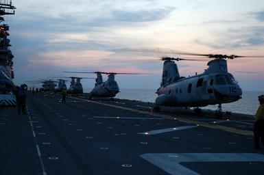 | Keywords: US Navy 070624-N-4014G-024 Four CH-46 Sea Knight helicopters and two CH-53E Super Stallion helicopters from Marine Medium Helicopter Squadron (HMM) 261 prepare to take off from the flight deck of amphibious assault ship USS Kea.jpg en ATLANTIC OCEAN June 25 2007 - Four CH-46 Sea Knight helicopters and two CH-53E Super Stallion helicopters from Marine Medium Helicopter Squadron HMM 261 prepare to take off from the flight deck of amphibious assault ship USS Kearsarge LHD 3 Kearsarge is underway in preparation for an upcoming deployment U S Navy photo by Mass Communication Specialist 3rd Class Patrick Gearhiser RELEASED 2007-06-25 070624-N-4014G-024 Navy http //www navy mil/view_image asp id 47506 U S Navy photo by Mass Communication Specialist 3rd Class Patrick Gearhiser PD-USGov-Military-Navy CH-46 US Marine Corps CH-53E US Marine Corps Aboard USS Kearsarge LHD-3 Marine Medium Helicopter Squadron 261 |