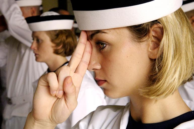 | Keywords: US Navy 070627-N-9241M-130 Ashley Bucholz is taught how to properly wear her cover. The cover should rest two fingers above the top of her nose.jpg en ANNAPOLIS Md June 27 2007 - Ashley Bucholz is taught how to properly wear her cover The cover should rest two fingers above the top of her nose More than 1 200 prospective midshipmen were welcomed aboard and make up the class of 2007 I-Day is the beginning of Plebe Summer a demanding seven-week orientation that marks the period that selected candidates to the Naval Academy are transformed from civilians to midshipman U S Navy photo by Mass Communication Specialist 2nd Class Jason McCammack RELEASED 2007-06-27 070627-N-9241M-130 Navy http //www navy mil/view_image asp id 48962 U S Navy photo by Mass Communication Specialist 2nd Class Jason McCammack PD-USGov-Military-Navy United States Naval Academy Induction Day Fingers Female green eyes Profile views of females Hand gestures |