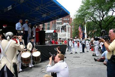 | Keywords: US Navy 070628-N-8110K-007 USS Constitution^rsquo,s color guard presents colors marching to the drums of an American Revolution period pipe and drum corps at the opening ceremony of Boston Harborfest and Boston Navy Week.jpg en BOSTON June 28 2007 - USS Constitution s color guard presents colors marching to the drums of an American Revolution period pipe and drum corps at the opening ceremony of Boston Harborfest and Boston Navy Week On the stage for the opening ceremony are Boston Mayor Thomas Menino; Rear Adm Tim Sullivan commander First Coast Guard District and commander Atlantic Fleet Maritime Homeland Defense District One; Cmdr John Beaver commanding officer of USS Bulkeley DDG 84 ; Cmdr Kevin Hunt commanding officer Navy Recruiting District New England; and Susan Park Boston Harborfest president The week is one of 26 Navy Weeks planned across America in 2007 Navy Weeks are designed to show Americans the investment they have made in their Navy and increase awareness in cities that do not have a significant Navy presence U S Navy photo by Chief Mass Communication Specialist Dave Kaylor RELEASED 2007-06-28 070628-N-8110K-007 Navy http //www navy mil/view_image asp id 47738 U S Navy photo by Chief Mass Communication Specialist Dave Kaylor PD-USGov-Military-Navy Images from US Navy location BOSTON USS Bulkeley DDG-84 Boston Navy Week Thomas Menino |