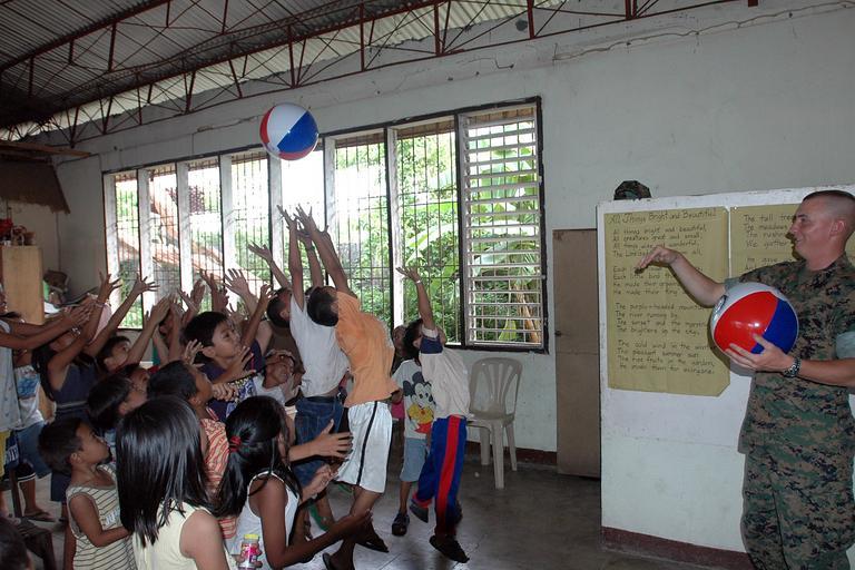 Keywords: US Navy 070630-N-9421C-072 Cpl. Bobby Sullivan attached to U.S Marine Forces Pacific Band tosses a beach ball to children at Travesia Elementary School.jpg en LIGAO Philippines June 30 2007 - Cpl Bobby Sullivan attached to U S Marine Forces Pacific Band tosses a beach ball to children at Travesia Elementary School As requested by the Republic of the Philippines Pacific Partnership 2007 personnel are working with representatives from the Philippines and partner nations to bring medical dental and civil engineering projects to the area U S Navy photo by Mass Communication Specialist 2nd Class Kerryl Cacho RELEASED 2007-06-30 070630-N-9421C-072 Navy http //www navy mil/view_image asp id 47792 U S Navy photo by Mass Communication Specialist 2nd Class Kerryl Cacho PD-USGov-Military-Navy Children of the Philippines People of the United States Marine Corps Military people of the United States with children People with beach balls Ligao |