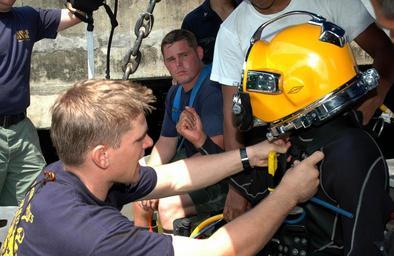 | Keywords: US Navy 070708-N-7783B-002 Navy Diver 2nd Class Nathan Kralemann, of Mobile Diving and Salvage Unit One Det. 11, helps a Royal Malaysian Navy mine warfare diver secure his diver^rsquo,s helmet.jpg en KEMAMAN Malaysia July 8 2007 - Navy Diver 2nd Class Nathan Kralemann of Mobile Diving and Salvage Unit One Det 11 helps a Royal Malaysian Navy mine warfare diver secure his diver s helmet properly during a joint salvage exercise during the Malaysian phase of exercise Cooperation Afloat Readiness and Training CARAT CARAT is an annual series of bilateral maritime training exercises between the United States and six Southeast Asia nations designed to build relationships and enhance the operational readiness of the participating forces U S Navy photo by Mass Communication Specialist 1st Class Thomas J Brennan RELEASED 2007-07-08 070708-N-7783B-002 Navy http //www navy mil/view_image asp id 48105 U S Navy photo by Mass Communication Specialist 1st Class Thomas J Brennan PD-USGov-Military-Navy Images from US Navy location KEMAMAN Malaysia Mobile Diving and Salvage Unit 1 Lightweight demand diving helmets United States Navy Divers |