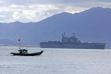 | Keywords: US Navy 070717-N-4954I-193 Amphibious assault ship USS Peleliu (LHA 5) is anchored in Da Nang Harbor as a Vietnamese fishing boat heads out to sea. Peleliu is in Da Nang in support of Pacific Partnership 2007.jpg en DA NANG Vietnam July 17 2007 Amphibious assault ship USS Peleliu LHA 5 is anchored in Da Nang Harbor as a Vietnamese fishing boat heads out to sea Peleliu is in Da Nang in support of Pacific Partnership 2007 The Vietnamese government is working with Pacific Partnership to facilitate medical dental and engineering assistance programs in the area Along with regional partners and non-governmental organizations the Pacific Partnership team is providing the local community with a wide range of assistance U S Navy photo by Mass Communication Specialist 3rd Class Bryan M Ilyankoff RELEASED 2007-07-17 070717-N-4954I-193 Navy http //www navy mil/view_image asp id 48668 U S Navy photo by Mass Communication Specialist 3rd Class Bryan M Ilyankoff PD-USGov-Military-Navy General views of USS Peleliu LHA-5 Boats in Da Nang Da Nang Port |