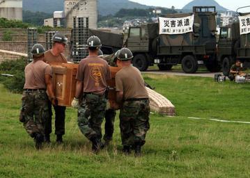 | Keywords: US Navy 070720-N-4270H-104 Seabees from Naval Air Facility Atsugi^rsquo,s Public Works Department move a general-purpose tent at Minato Machi Kaihin Kohen in Niigata prefecture.jpg en KASHIWAZAKI Japan July 20 2007 - Seabees from Naval Air Facility Atsugi s Public Works Department move a general-purpose tent at Minato Machi Kaihin Kohen in Niigata prefecture Fifteen Seabees were sent to the northwestern prefecture of Niigata an area that sustained a 6 8 magnitude earthquake July 16 During their three-day stay the Seabees worked side-by-side with soldiers from the Japan Ground Self-Defense Force to install 79 units at 21 different sites U S Navy photo by Pat Halton RELEASED 2007-07-20 070720-N-4270H-104 Navy http //www navy mil/view_image asp id 48657 U S Navy photo by Pat Halton PD-USGov-Military-Navy Images from US Navy location KASHIWAZAKI Japan Kashiwazaki Niigata Type 73 chugata truck |