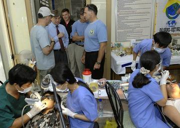 | Keywords: US Navy 070721-N-4954I-183 Jonathan Aloisi, deputy chief of mission of the U.S. Embassy in Hanoi, listens as Capt. Charles Craft, with U.S. Public Health Service, explains the dental work being done at Nai Hiem Dong Medical Sta.jpg en DA NANG Vietnam July 21 2007 - Jonathan Aloisi deputy chief of mission of the U S Embassy in Hanoi listens as Capt Charles Craft with U S Public Health Service explains the dental work being done at Nai Hiem Dong Medical Station Dental work performed by dentists and clinic volunteers at the medical station are supporting Pacific Partnership 2007 The Vietnamese government is working with Pacific Partnership to facilitate medical dental and engineering assistance programs in the Da Nang area Along with regional partners and non-governmental organizations the Pacific Partnership team is providing the local community with a wide range of assistance U S Navy photo by Mass Communication Specialist 3rd Class Bryan M Ilyankoff RELEASED 2007-07-21 070721-N-4954I-183 Navy http //www navy mil/view_image asp id 48556 U S Navy photo by Mass Communication Specialist 3rd Class Bryan M Ilyankoff PD-USGov-Military-Navy People of Da Nang Son Tra District Health in Da Nang |
