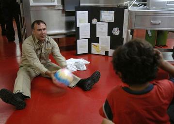 | Keywords: US Navy 070722-N-6278K-019 Capt. Bob Kapcio, mission commander aboard Military Sealift Command hospital ship USNS Comfort (T-AH 20), plays with Darwin Padilla before he goes back home. Padilla underwent surgery aboard Comfort t.jpg en PACIFIC OCEAN July 22 2007 - Capt Bob Kapcio mission commander aboard Military Sealift Command hospital ship USNS Comfort T-AH 20 plays with Darwin Padilla before he goes back home Padilla underwent surgery aboard Comfort to remove an extra toe Padilla had trouble wearing closed-toed shoes and running with the extra digit and was screened by Comfort's medical staff at Jose Schendal Health Center in Corinto Nicaragua where they decided the boy needed surgery Comfort is on a four-month humanitarian deployment to Latin America and the Caribbean to provide medical treatment to patients in a dozen countries While deployed Comfort is under operational control of U S Naval Forces Southern Command and tactical control of Destroyer Squadron 24 U S Navy photo by Mass Communication Specialist 2nd Class Joan Kretschmer RELEASED 2007-07-22 070722-N-6278K-019 Navy http //www navy mil/view_image asp id 48576 U S Navy photo by Mass Communication Specialist 2nd Class Joan Kretschmer PD-USGov-Military-Navy Aboard USNS Comfort T-AH-20 |