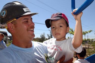 | Keywords: US Navy 070722-N-9421C-143 Equipment Operator 2nd Class Robert Bustos plays with a Vietnamese child on a newly built playground set at Hoi Mai Orphanage during an engineering civic action program in support of Pacific Partnersh.jpg en DA NANG Vietnam July 22 2007 - Equipment Operator 2nd Class Robert Bustos plays with a Vietnamese child on a newly built playground set at Hoi Mai Orphanage during an engineering civic action program in support of Pacific Partnership 2007 Seabees with Naval Mobile Construction Battalion NMCB 7 and Amphibious Construction Battalion ACB 1 are working at the orphanage in support of Pacific Partnership The Pacific Partnership deployment to Vietnam continues to improve upon bilateral relations between the United States and Vietnam demonstrating our continued commitment to work together to address mutual issues and concerns U S Navy photo by Mass Communication Specialist 2nd Class Kerryl Cacho RELEASED 2007-07-22 070722-N-9421C-143 Navy http //www navy mil/view_image asp id 48584 U S Navy photo by Mass Communication Specialist 2nd Class Kerryl Cacho PD-USGov-Military-Navy Children of Da Nang Hoa Mai Orphanage Relations of the United States and Vietnam Equipment Operator United States Navy |
