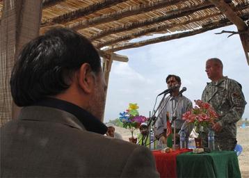 | Keywords: US Navy 070723-N-3385W-086 U.S. Navy Cmdr. David Adams, commanding officer of Provincial Reconstruction Team Khost, explains that education is the future of Afghanistan at the groundbreaking ceremony for the new university road.jpg en KHOST Afghanistan July 23 2007 U S Navy Cmdr David Adams commanding officer of Provincial Reconstruction Team Khost explains that education is the future of Afghanistan at the groundbreaking ceremony for the new university road while Khost Gov Arsala Jamal looks on U S Navy photo by Ensign Christopher Weis RELEASED 2007-07-23 070723-N-3385W-086 Navy http //www navy mil/view_image asp id 48592 U S Navy photo by Ensign Christopher Weis PD-USGov-Military-Navy Dave Adams Arsala Jamal Khost Province in the War in Afghanistan 2001-present Provincial Reconstruction Team in Khost Afghanistan Ground-breaking ceremonies |