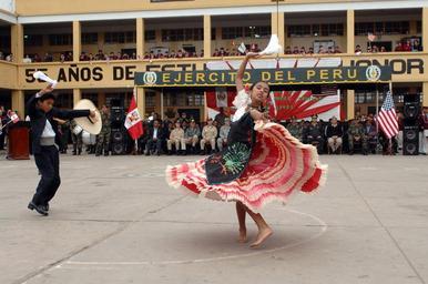 | Keywords: US Navy 070807-N-0194K-295 Folk dancers perform for of the Military Sealift Command (MSC) hospital ship USNS Comfort (T-AH 20), leadership during an opening ceremony.jpg en SALAVERRY Peru Aug 7 2007 - Folk dancers perform for of the Military Sealift Command MSC hospital ship USNS Comfort T-AH 20 leadership during an opening ceremony celebrating their arrival at the Sanchez Carrion School in Salaverry Peru Comfort is on a four-month humanitarian deployment to Latin America and the Caribbean providing medical treatment to patients in a dozen countries U S Navy photo by Mass Communication Specialist 2nd Class Mass Communication Specialist Steven King RELEASED 2007-08-07 070807-N-0194K-295 Navy http //www navy mil/view_image asp id 49192 U S Navy photo by Mass Communication Specialist 2nd Class Mass Communication Specialist Steven King PD-USGov-Military-Navy La Libertad Region Aboard USNS Comfort T-AH-20 Folk dance |