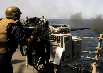 | Keywords: US Navy 070807-N-8132M-094 A Sailor fires a 25mm chain gun during a gun qualifications and small craft action team (SCAT) training exercise aboard the guided-missile destroyer USS Arleigh Burke (DDG 51).jpg en Indian Ocean Aug 7 2007 - A Sailor fires a 25mm chain gun during a gun qualifications and small craft action team SCAT training exercise aboard the guided-missile destroyer USS Arleigh Burke DDG 51 The Arleigh Burke is underway on a scheduled six-month deployment in support of the global war on terrorism U S Navy photo by Mass Communication Specialist Seaman Kiona M Mckissack RELEASED 2007-08-07 070807-N-8132M-094 Navy http //www navy mil/view_image asp id 49240 U S Navy photo by Mass Communication Specialist Seaman Kiona M Mckissack PD-USGov-Military-Navy Mk 38 25mm chain gun USS Arleigh Burke DDG-51 |