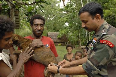 | Keywords: US Navy 070810-N-4954I-038 Lt. Col. Raveesh Chhajed, a veterinarian from the Indian Army, gives a rabies vaccination to a family dog during a veterinarian civil-assistance program.jpg en MADANG Papua New Guinea Aug 10 2007 - Lt Col Raveesh Chhajed a veterinarian from the Indian Army gives a rabies vaccination to a family dog during a veterinarian civil-assistance program in support of Pacific Partnership Along with regional partners and non-governmental organizations the Pacific Partnership team is providing the local community with a wide range of assistance U S Navy photo by Mass Communication Specialist 3rd Class Bryan M Ilyankoff RELEASED 2007-08-10 070810-N-4954I-038 Navy http //www navy mil/view_image asp id 49403 U S Navy photo by Mass Communication Specialist 3rd Class Bryan M Ilyankoff PD-USGov-Military-Navy Madang Rabies Veterinary vaccinations |