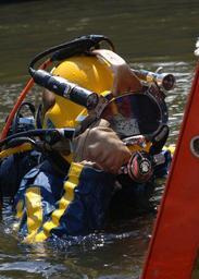 | Keywords: US Navy 070811-N-3093M-006 Chief Navy Diver Scott Maynard attached to Mobile Diving and Salvage Unit (MDSU) 2 from Naval Amphibious Base Little Creek, Va., prepares to leave the surface on a salvage dive in the Mississippi Rive.jpg en MINNEAPOLIS Minn Aug 11 2007 - Chief Navy Diver Scott Maynard attached to Mobile Diving and Salvage Unit MDSU 2 from Naval Amphibious Base Little Creek Va prepares to leave the surface on a salvage dive in the Mississippi River MDSU-2 is assisting other federal state and local authorities managing disaster and recovery efforts at the site of the I-35 bridge collapse U S Navy photo by Senior Chief Mass Communication Specialist Andrew McKaskle RELEASED Aug 11 2007-08-11 070811-N-3093M-006 Navy http //www navy mil/view_image asp id 49420 U S Navy photo by Senior Chief Mass Communication Specialist Andrew McKaskle PD-USGov-Military-Navy I-35W Mississippi River Bridge collapse United States Navy Mobile Diving and Salvage Unit Two Lightweight demand diving helmets United States Navy Divers Diving lights Underwater video equipment |
