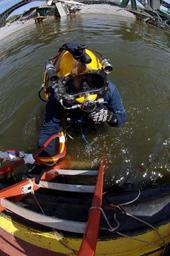 | Keywords: US Navy 070811-N-3093M-008 Navy Diver 1st Class Joshua Harsh attached to Mobile Diving and Salvage Unit (MDSU) 2 from Naval Amphibious Base Little Creek, Va., prepares to leave the surface on a salvage dive in the Mississippi R.jpg en MINNEAPOLIS Minn Aug 11 2007 - Navy Diver 1st Class Joshua Harsh attached to Mobile Diving and Salvage Unit MDSU 2 from Naval Amphibious Base Little Creek Va prepares to leave the surface on a salvage dive in the Mississippi River MDSU-2 is assisting other federal state and local authorities managing disaster and recovery efforts at the site of the I-35 bridge collapse U S Navy photo by Senior Chief Mass Communication Specialist Andrew McKaskle RELEASED 2007-08-11 070811-N-3093M-008 Navy http //www navy mil/view_image asp id 49422 U S Navy photo by Senior Chief Mass Communication Specialist Andrew McKaskle PD-USGov-Military-Navy I-35W Mississippi River Bridge collapse United States Navy Mobile Diving and Salvage Unit Two Lightweight demand diving helmets United States Navy Divers Diving lights Underwater video equipment |