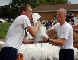 | Keywords: US Navy 070824-N-0606B-005 Seaman Robert Wolfe takes a sandbag from Seaman Josh Dalrymple while filling and loading sandbags for delivery to local homes.jpg en GURNEE Ill Aug 24 2007 - Seaman Robert Wolfe takes a sandbag from Seaman Josh Dalrymple while filling and loading sandbags for delivery to local homes Both are students at Naval Hospital Corps School More than 300 Sailors from Naval Station Great Lakes volunteered to fill sandbags for communities threatened by rising floodwaters along the Des Plaines River watershed The Sailors assisted in Gurnee Des Plaines and Mount Prospect Ill U S Navy photo by Chief Mass Communication Specialist Rhonda Burke RELEASED 2007-08-24 070824-N-0606B-005 Navy http //www navy mil/view_image asp id 49998 U S Navy photo by Chief Mass Communication Specialist Rhonda Burke PD-USGov-Military-Navy Images from US Navy location GURNEE Ill Sandbags |