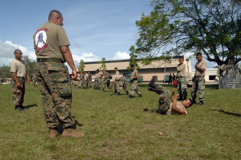 | Keywords: US Navy 070828-N-0989H-186 Members of the Belize Defense Force are instructed on controlled falling techniques by U.S. Marines assigned to a Mobile Training Team during small unit tactics training at the Price Barracks.jpg en BELIZE CITY Belize Aug 28 2007 - Members of the Belize Defense Force are instructed on controlled falling techniques by U S Marines assigned to a Mobile Training Team during small unit tactics training at the Price Barracks Task Group 40 9 is deployed under the operational control of U S Naval Forces Southern Command NAVSO for the Global Fleet Station GFS pilot deployment to the Caribbean Basin and Central America This deployment is designed to validate the GFS concept for the Navy and support NAVSO objectives for its area of responsibility by enhancing cooperative partnerships with regional maritime services and improving operational readiness for the participating partner nations U S Navy photo by Mass Communication Specialist 1st Class David Hoffman RELEASED 2007-08-28 070828-N-0989H-186 Navy http //www navy mil/view_image asp id 50160 U S Navy photo by Mass Communication Specialist 1st Class David Hoffman PD-USGov-Military-Navy United States Navy in Belize City Belize Defense Force |