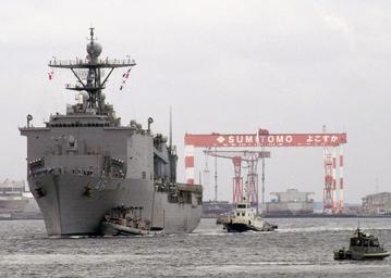 | Keywords: US Navy 070901-N-9520G-003 Harbor tugs assist dock landing ship USS Tortuga (LSD 46) as the ship enters port at Commander Fleet Activities Yokosuka with simulated Japanese evacuees as part of a Tokyo Metropolitan Government dis.jpg en YOKOSUKA Japan Sept 1 2007 - Harbor tugs assist dock landing ship USS Tortuga LSD 46 as the ship enters port at Commander Fleet Activities Yokosuka with simulated Japanese evacuees as part of a Tokyo Metropolitan Government disaster relief drill Tortuga assisted in the drill by evacuating simulated stranded citizens from Tokyo's Kasai Kaihin Park to the ship via landing craft air cushion LCAC This is the second year that the U S Navy has participated in this type of drill U S Navy photo by Mass Communication Specialist 2nd Class Nardelito Gervacio RELEASED 2007-09-01 070901-N-9520G-003 Navy http //www navy mil/view_image asp id 50283 U S Navy photo by Mass Communication Specialist 2nd Class Nardelito Gervacio PD-USGov-Military-Navy United States Fleet Activities Yokosuka Aboard USS Tortuga LSD-46 Ships entering port |