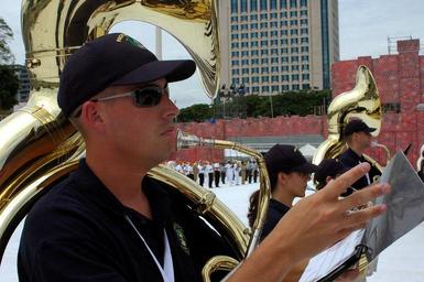 | Keywords: US Navy 070902-N-5174T-002 Musician 1st Class Brian Chaplow and other members of the Navy^rsquo,s Pacific Fleet Band rehearse for their performance in the Kuala Lumpur International Tattoo 2007.jpg en KUALA LUMPUR Malaysia Sept 2 2007 - Musician 1st Class Brian Chaplow and other members of the Navy s Pacific Fleet Band rehearse for their performance in the Kuala Lumpur International Tattoo 2007 The event scheduled for Sept 6-8 will celebrate the 50th anniversary of Malaysia s independence and feature military bands from the United States Brunei France India Jordan the Republic of Korea the Republic of the Philippines the Republic of Singapore the Kingdom of Thailand the Islamic Republic of Pakistan and the United Kingdom and a Maori cultural group from New Zealand U S Navy photo by Mass Communication Specialist 1st Class Shane Tuck RELEASED 2007-09-02 070902-N-5174T-002 Navy http //www navy mil/view_image asp id 50434 U S Navy photo by Mass Communication Specialist 1st Class Shane Tuck PD-USGov-Military-Navy Images from US Navy location Kuala Lumpur Malaysia Military music of the United States |