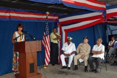| Keywords: US Navy 071002-N-8704K-062 (From left) Ambassador Lisa Bobbie Schreiber Hughes, U.S. Ambassador to Suriname, speaks during an opening ceremony marking hospital ship USNS Comfort^rsquo,s (T-AH 20) arrival to Suriname.jpg en PARAMARIBO Suriname Oct 02 2007 - From left Ambassador Lisa Bobbie Schreiber Hughes U S Ambassador to Suriname speaks during an opening ceremony marking hospital ship USNS Comfort s T-AH 20 arrival to Suriname at the Youth Dental Care Foundation Comfort is on a four-month humanitarian deployment to Latin America and the Caribbean providing medical treatment to patients in a dozen countries U S Navy photo by Mass Communication 2nd Class Joshua Karsten RELEASED 2007-10-02 071002-N-8704K-062 Navy http //www navy mil/view_image asp id 51528 U S Navy photo by Mass Communication 2nd Class Joshua Karsten PD-USGov-Military-Navy Images from US Navy location PARAMARIBO Suriname Lisa Bobbie Schreiber Hughes |