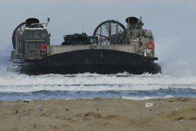 | Keywords: US Navy 071111-N-0120A-085 Landing Craft Air Cushion (LCAC) 90, from the.jpg en PO HANG Korea Nov 11 2007 Landing Craft Air Cushion LCAC 90 from the Dragons of Assault Craft Unit ACU 5 Det Western Pacific rides in the surf to the beach at Po Hang LCACs from ACU-5 spent the day transiting to and from the amphibious assault ship USS Essex LHD 2 in order to embark U S and Republic of Korea Marines Essex is the lead ship of the only forward-deployed U S Expeditionary Strike Group and serves as the flagship for CTF 76 the Navy's only forward-deployed amphibious force commander Task Force 76 is headquartered at White Beach Naval Facility Okinawa Japan with a detachment in Sasebo Japan U S Navy photo by Mass Communication Specialist 3rd Class Mark R Alvarez Released 2007-11-11 071111-N-0120A-085 Navy http //www navy mil/view_image asp id 52796 U S Navy photo by Mass Communication Specialist 3rd Class Mark R Alvarez PD-USGov-Military-Navy Images from US Navy location PO HANG Korea LCAC-90 ship 1997 |