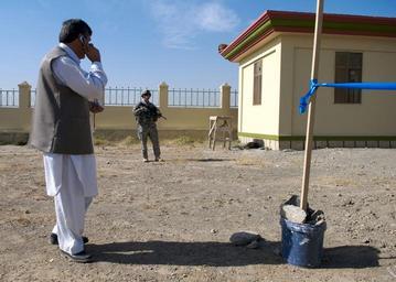 | Keywords: US Navy 071121-N-3385W-106 Lt. Robert Holt, the executive officer of Provincial Reconstruction Team Khost, stands guard during the opening ceremony for an agricultural demonstration farm for Khost University.jpg en KHOST Afghanistan Nov 21 2007 Lt Robert Holt the executive officer of Provincial Reconstruction Team Khost stands guard during the opening ceremony for an agricultural demonstration farm for Khost University as Gul Hassan Wali Zai the university chancellor makes a phone call to prepare for the coming events The farm is designed to test new seeds and crops for the Afghan environment Holt is an individual augmentee Sailor from Hawaii U S Navy photo by Ensign Christopher Weis Released 2007-11-21 071121-N-3385W-106 Navy http //www navy mil/view_image asp id 52989 U S Navy photo by Ensign Christopher Weis PD-USGov-Military-Navy Khost Province in the War in Afghanistan 2001-present |