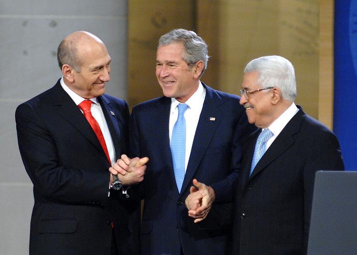 | Keywords: US Navy 071127-N-8395K-004 Israeli Prime Minister Ehud Omert, left, President George W. Bush, and Palestinian President Mahmoud Abbas shake hands following President Bush's address.jpg en ANNAPOLIS Md Nov 27 2008 Israeli Prime Minister Ehud Omert left President George W Bush and Palestinian President Mahmoud Abbas shake hands following President Bush's address to more than 50 counties and organizations at the Annapolis Conference in the Naval Academy's Memorial Hall Attendees included the Quartet made up of the United Nations European Union Russia and the United States; members of the Arab League Follow-on Committee the Group of Eight major industrialized nations permanent members of the U N Security Council and other key international officials U S Navy photo by Gin Kai Released 2008-11-27 071127-N-8395K-004 Navy http //www navy mil/view_image asp id 53143 U S Navy photo by Gin Kai PD-USGov-Military-Navy Events at the United States Naval Academy George W Bush and Ehud Olmert Mahmoud Abbas and George W Bush Mahmoud Abbas in 2007 George W Bush in 2007 |