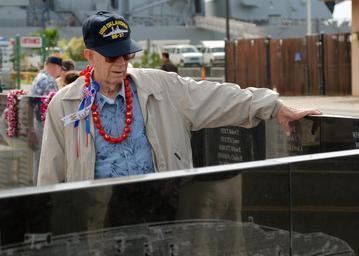 | Keywords: US Navy 071207-N-3283M-039 Pearl Harbor survivor and former crew member of USS Oklahoma (BB 37), Paul Goodyear reads the name of former shipmates lost on Oklahoma during a joint Oklahoma Memorial Committee-National Park Service.jpg en PEARL HARBOR Hawaii Dec 7 2007 Pearl Harbor survivor and former crew member of USS Oklahoma BB 37 Paul Goodyear reads the name of former shipmates lost on Oklahoma during a joint Oklahoma Memorial Committee/National Park Service dedication ceremony for the newly constructed memorial on historic Ford Island According to the memorial's architect Don Beck the memorial portrays Sailors manning the rails or rendering honors to a naval vessel as their own vessel passes U S Navy photo by Mass Communication Specialist 2nd Class Sarah Murphy Released 2007-12-07 071207-N-3283M-039 Navy http //www navy mil/view_image asp id 53680 U S Navy photo by Mass Communication Specialist 2nd Class Sarah Murphy PD-USGov-Military-Navy USS Oklahoma Memorial Manning the rail in the United States Navy |
