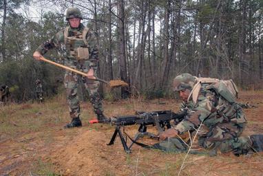 | Keywords: US Navy 071215-N-2468S-002 Lt.j.g. John Weaver, left, attached to Naval Mobile Construction Battalion (NMCB) 133, digs a fighting position while Chief Hospital Corpsman Wendell Bates sets up his 240B machine gun during a field.jpg en CAMP SHELBY Miss Dec 15 2007 Lt j g John Weaver left attached to Naval Mobile Construction Battalion NMCB 133 digs a fighting position while Chief Hospital Corpsman Wendell Bates sets up his M240B machine gun during a field exercise FEX FEX is a routine exercise designed to sharpen the battalion's combat and contingency construction capabilities U S Navy photo by Mass Communication Specialist 1st Class Terry Spain Released 2007-12-15 071215-N-2468S-002 Navy http //www navy mil/view_image asp id 53924 U S Navy photo by Mass Communication Specialist 1st Class Terry Spain PD-USGov-Military-Navy Camp Shelby M-240 machine gun |