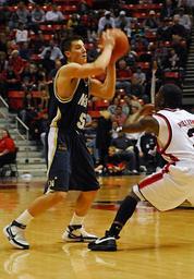 | Keywords: US Navy 071217-N-7206K-004 U.S. Navy Midshipman Chris Harris looks for an opening to pass the ball to his teammates during a basketball game against the San Diego State University Aztecs.jpg en SAN DIEGO Dec 17 2007 U S Navy Midshipman Chris Harris looks for an opening to pass the ball to his teammates during a basketball game against the San Diego State University Aztecs The Aztecs broke the Navy's grip during the second half of the game to win with a final score of 86-76 U S Navy photo by Mass Communication Specialist 2nd Class Joy Marie Kirch Released 2007-12-17 071217-N-7206K-004 Navy http //www navy mil/view_image asp id 54051 U S Navy photo by Mass Communication Specialist 2nd Class Joy Marie Kirch PD-USGov-Military-Navy Viejas Arena San Diego State Aztecs men's basketball Sports in the United States Navy |