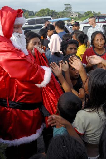 | Keywords: US Navy 071224-N-7286M-007 Lt. j.g. Darren Denyar, dressed as Santa Claus, hands out gifts and candy to families on Christmas Eve.jpg en ZAMBOANGA CITY Philippines Dec 24 2007 Lt j g Darren Denyar dressed as Santa Claus hands out gifts and candy to families on Christmas Eve Joint Special Operations Task Force - Philippines was asked to assist ABS/CBN television to spread Holiday cheer through Zamboanga City U S Navy photo by Mass Communication Specialist 1st Class Daniel R Mennuto Released 2007-12-24 071224-N-7286M-007 Navy http //www navy mil/view_image asp id 54160 U S Navy photo by Mass Communication Specialist 1st Class Daniel R Mennuto PD-USGov-Military-Navy United States Navy in Zamboanga City Santa Claus costumes People handing out candy |