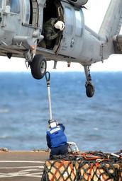 | Keywords: US Navy 080109-N-4133B-013 An MH-60S Seahawk, assigned to the.jpg en PACIFIC OCEAN Jan 9 2008 An MH-60S Seahawk assigned to the Blackjacks of Helicopter Sea Combat Squadron HSC 21 prepares to hook up to a pallet from the Military Sealift Command ammunition ship USNS Flint T-AE 32 and drop it onto the Nimitz-class nuclear-powered aircraft carrier USS Ronald Reagan CVN 76 during an ammunition on load Ronald Reagan is underway in the Pacific Ocean conducting routine carrier operations U S Navy photo by Mass Communication Specialist 3rd Class Benjamin Brossard Released 2008-01-09 080109-N-4133B-013 Navy http //www navy mil/view_image asp id 54387 U S Navy photo by Mass Communication Specialist 3rd Class Benjamin Brossard PD-USGov-Military-Navy Helicopters at USS Ronald Reagan CVN-76 MH-60S Seahawk Helicopter Sea Combat Squadron 21 United States Navy |