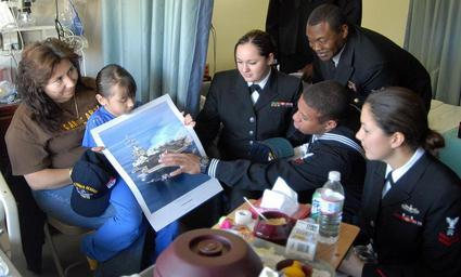 | Keywords: US Navy 080112-N-4005H-074 Sailors from the Nimitz-class nuclear-powered aircraft carrier USS Ronald Reagan (CVN 76) explain how aircraft take off from the flight deck to a child from the children's ward of Santa Barbara Cottag.jpg en SANTA BARBARA Calif Jan 12 2008 Sailors from the Nimitz-class nuclear-powered aircraft carrier USS Ronald Reagan CVN 76 explain how aircraft take off from the flight deck to a child from the children's ward of Santa Barbara Cottage Hospital Ronald Reagan crewmembers visited the hospital during a community relations project Reagan Sailors are on a scheduled port visit to Santa Barbara Calif U S Navy photo by Mass Communication Specialist Seaman Aaron Holt Released 2008-01-12 080112-N-4005H-074 Navy http //www navy mil/view_image asp id 54514 U S Navy photo by Mass Communication Specialist Seaman Aaron Holt PD-USGov-Military-Navy Santa Barbara California Aboard USS Ronald Reagan CVN-76 |