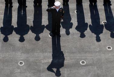 | Keywords: US Navy 080211-N-0640K-015 A Sailor aboard the Nimitz-class aircraft carrier USS Ronald Reagan (CVN 76) renders a hand salute during a burial-at-sea ceremony for nine military veterans.jpg en PACIFIC OCEAN Feb 11 2008 A Sailor aboard the Nimitz-class aircraft carrier USS Ronald Reagan CVN 76 renders a hand salute during a burial-at-sea ceremony for nine military veterans including retired U S Navy captain and astronaut Walter M Wally Schirra Ronald Reagan is conducting routine carrier operations U S Navy photo by Mass Communication Specialist 2nd Class Jennifer S Kimball Released 2008-02-11 080211-N-0640K-015 Navy http //www navy mil/view_image asp id 55180 U S Navy photo by Mass Communication Specialist 2nd Class Jennifer S Kimball PD-USGov-Military-Navy Salutes Sea burials aboard USS Ronald Reagan CVN-76 |