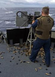 | Keywords: US Navy 080216-N-5253W-004 Gunner's Mate 2nd Class Jami Kilmer of the Arleigh Burke-class guided-missile destroyer USS Fitzgerald (DDG 62) fires dual .50-caliber machine guns.jpg en PACIFIC OCEAN Feb 16 2008 Gunner's Mate 2nd Class Jami Kilmer of the Arleigh Burke-class guided-missile destroyer USS Fitzgerald DDG 62 fires dual 50-caliber machine guns during a live-fire small-craft action team SCAT drill while underway in the western Pacific SCAT drills are designed to train crewmembers how to react in the event of a small-boat attack on the ship U S Navy photo by Mass Communication Specialist 3rd Class Gabriel S Weber Released 2008-02-16 080216-N-5253W-004 Navy http //www navy mil/view_image asp id 55415 U S Navy photo by Mass Communication Specialist 3rd Class Gabriel S Weber PD-USGov-Military-Navy Browning M2 of the US Navy Aboard USS Fitzgerald DDG-62 Gunner's Mate Cartridge cases |